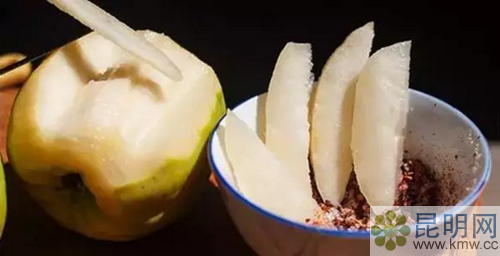 酸木瓜是云南特產。未成熟的青木瓜中蛋白酶含量最高,大約是成熟后紅木瓜的2倍,它可以消滅人體內某些細菌和蛔蟲,但最怕高溫加熱,所以生吃最好。《本草綱目》中記載:木瓜性溫味酸,平肝和胃,舒筋絡,活筋骨,降血壓。生吃木瓜則可以幫助消化、清理腸胃。第一次吃酸木瓜蘸辣子會覺得是道黑暗料理,但不得不說的是味道又怪又好吃,吃習慣就好了,因為云南人都是這樣吃的呀!